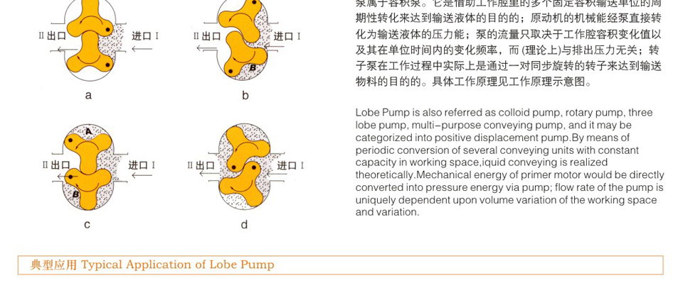ZB3A系列膠體泵-又稱羅茨泵、不銹鋼轉(zhuǎn)子泵、凸輪泵、萬用輸送泵、酵母泵、蝴蝶泵、三葉泵、鞋底泵、藥料泵、熱溶膠體泵、顆粒膠體泵、渣料泵、蛋白渣泵、高濃漿泵等,依靠兩個同步反轉(zhuǎn)動的轉(zhuǎn)子在旋轉(zhuǎn)過程中于進口處產(chǎn)生吸力(真空度),從而吸入所要輸送的物料。